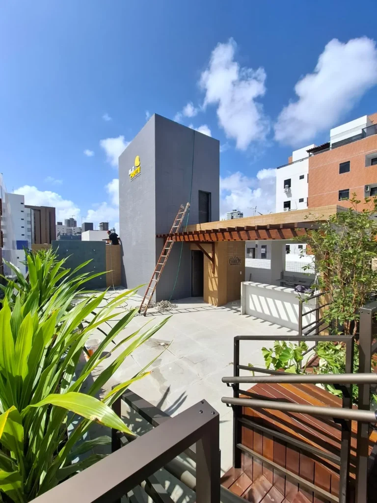 Um dos grandes diferenciais do Elo Beach Residence é sua área de lazer na cobertura, com piscina, deck, solarium e espaço gourmet, proporcionando momentos únicos de descanso e convivência, com vista privilegiada e ventilação natural. Tudo foi pensado para oferecer uma rotina mais leve, confortável e conectada ao estilo de vida do litoral paraibano.